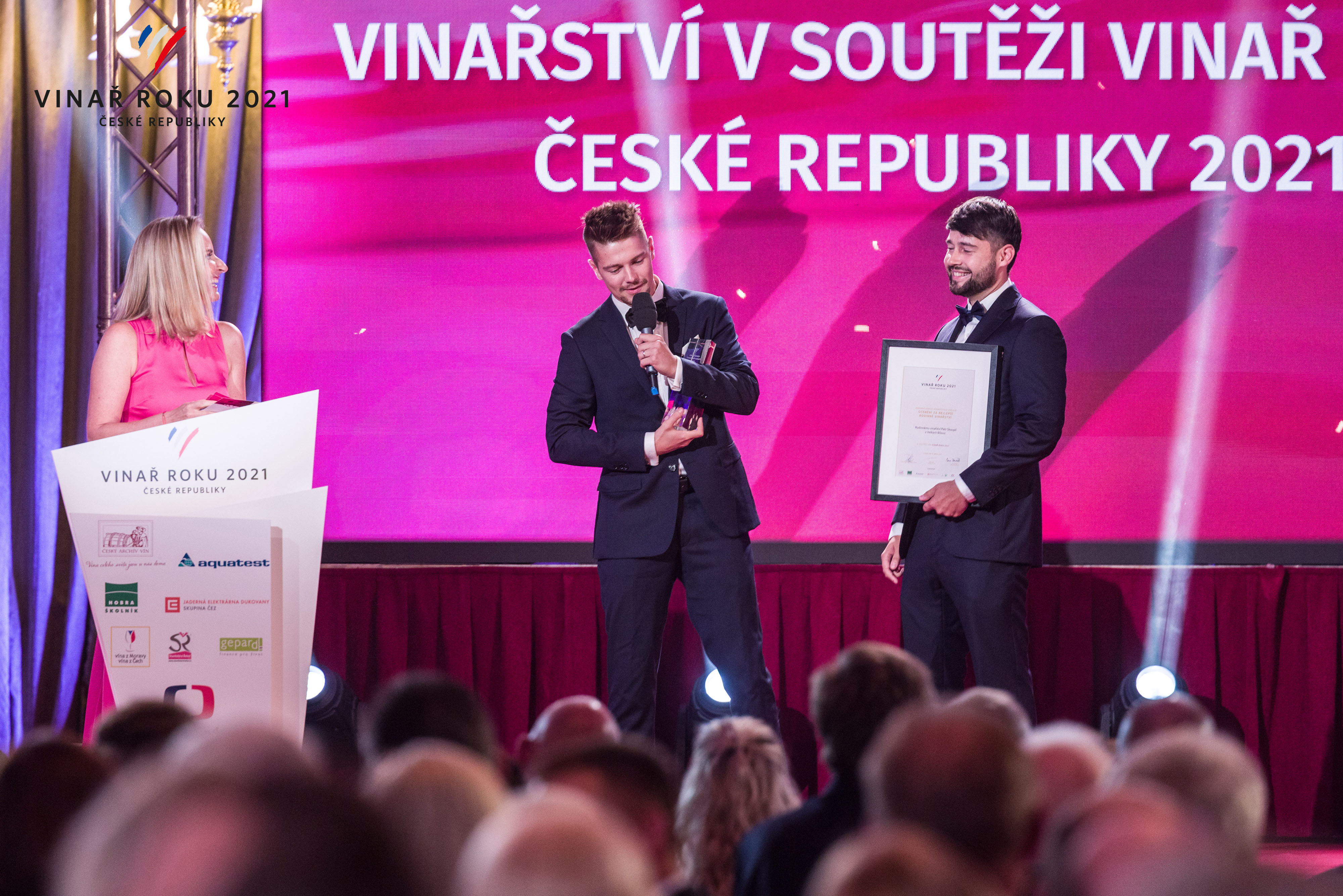 Cenu Vinařské asociace ČR za přínos českému a moravskému vinařství získal poprvé sommelier – Ivo Dvořák, který nám předal na podiu naši novou cenu.